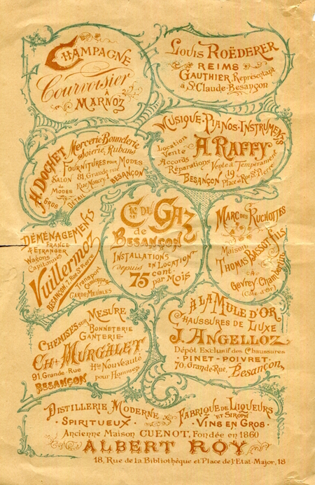 France Besancon Entertainment Cafe Orient Program 1890 Back