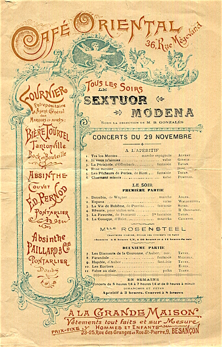 France Besancon Entertainment Cafe Orient Program 1890 Front
