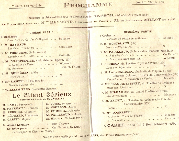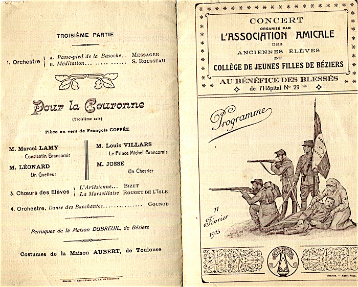 France Beziers Entertainment College De Jeunes Filles Concert Program 1915 Front