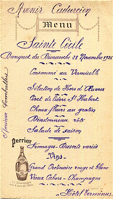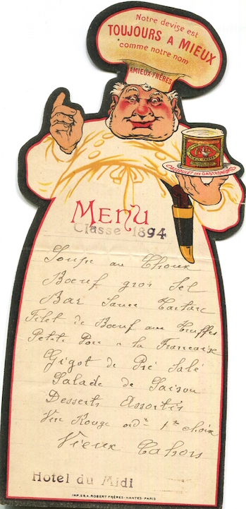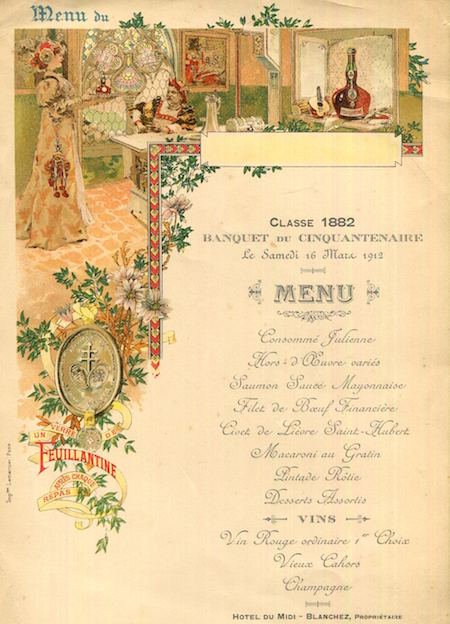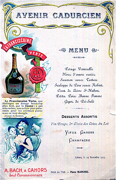 France Cahors Special Occassion Menu 1905