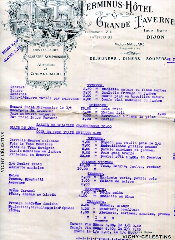 France Dijon Hotel Terminus Menu 1926