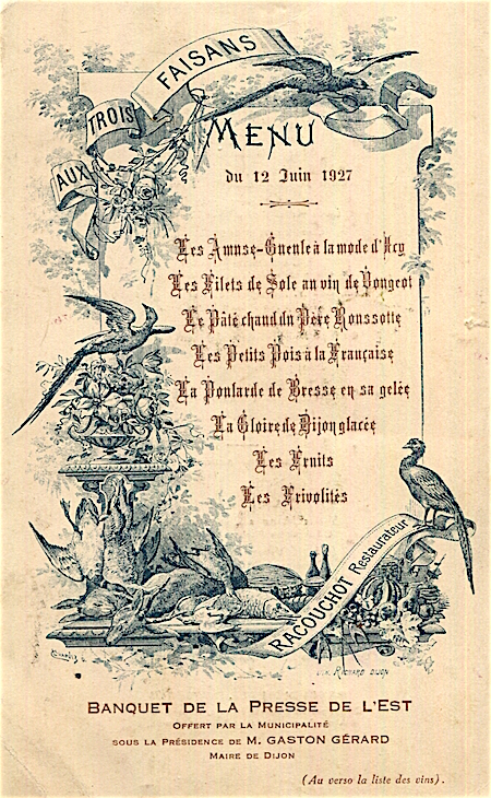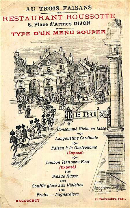 France Dijon Menu Restaurant Au Trois Faisans 1921
