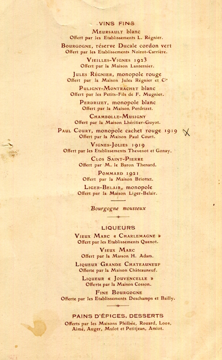 France Dijon Menu Restaurant Au Trois Faisans 1927 Back