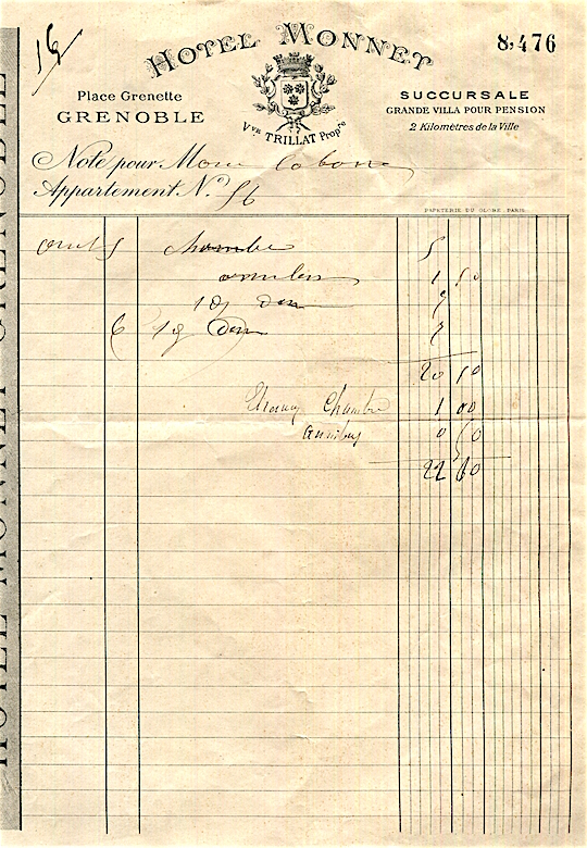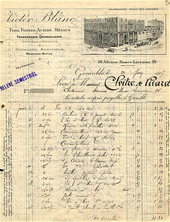 France Grenoble Commerce Victor Blanc Receipt 1907