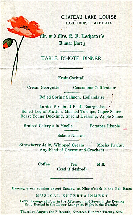 Canada Lake Louise Hotel Menu Chateau Lake Louise 1929