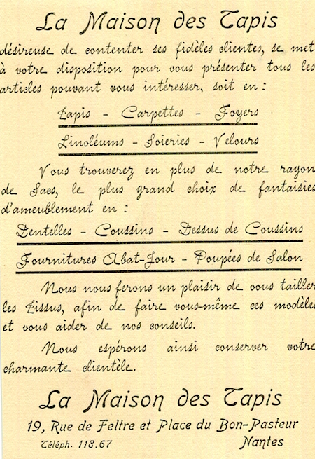 France Nantes Commerce La Maison Des Tapis Business Card Carpets 1930 Back