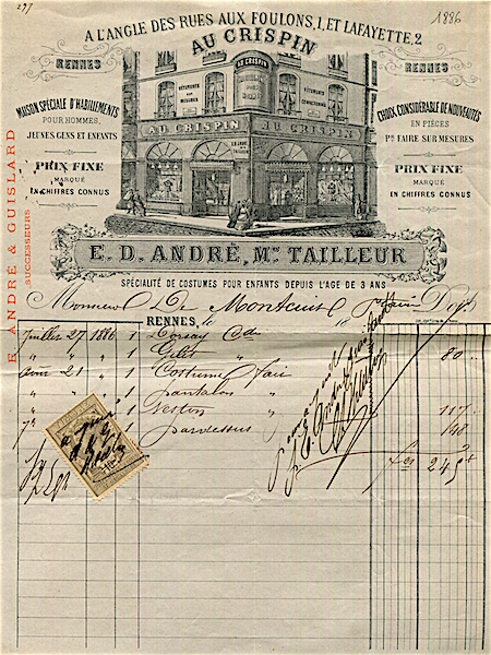 France Rennes Commerce E D Andre Receipt Mens Clothing 1886