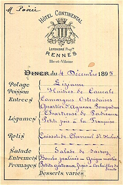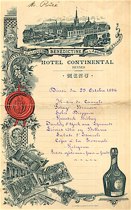 France Rennes Hotel Continental Menu 1895 1