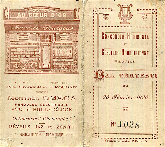 France Roubaix Entertainment Costume Ball Dance Card 1926 Front