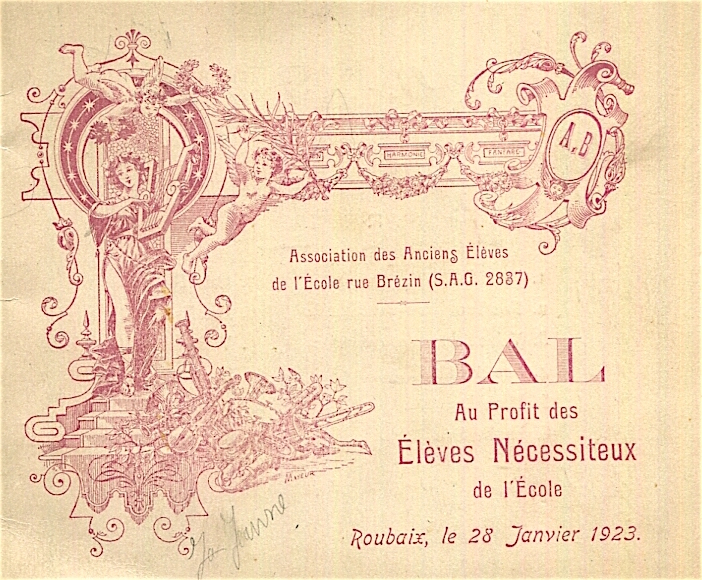 France Roubaix Entertainment Ecole Ball Invitation 1923