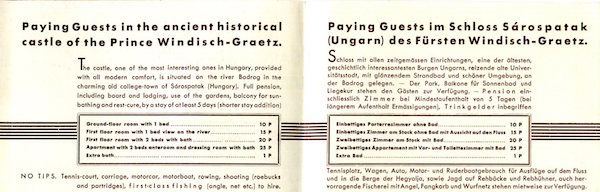 Hungary Sarospatak Brochure Schloss Sarospatak 1936 Inside