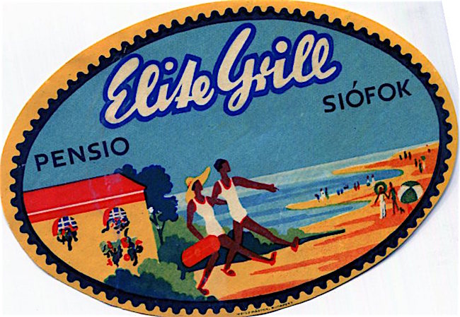 Hungary Siofok Hotel Pension Elise Grill Luggage Label 1930