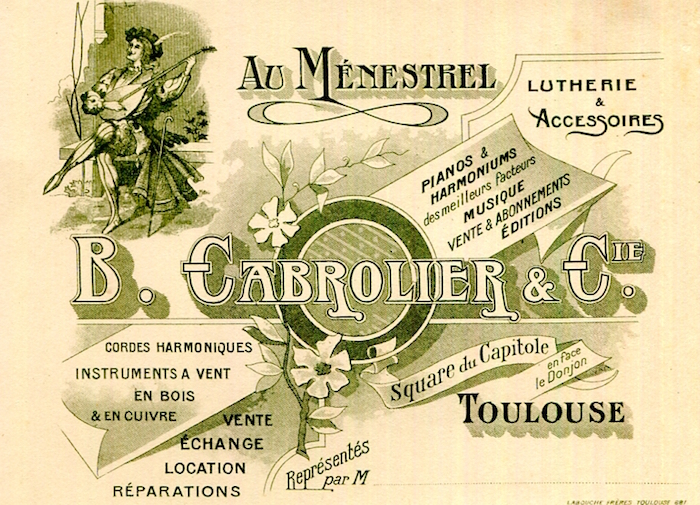 France Toulouse Commerce B Cabrolier Trade Card String Instruments 1900