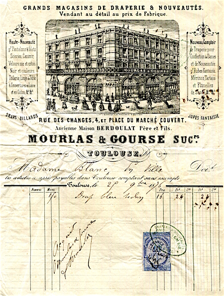 France Toulouse Commerce Grands Magasins De Draperie Nouveautes Receipt 1876