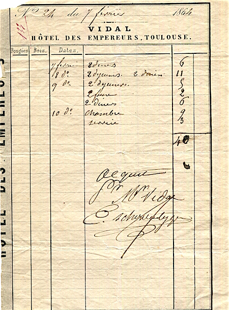 France Toulouse Hotel Des Empereurs Receipt 1864