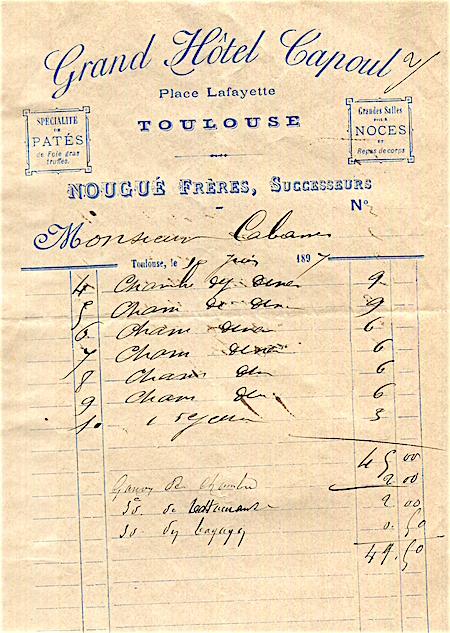 France Toulouse Hotel Grand Ccapoul Receipt 1897