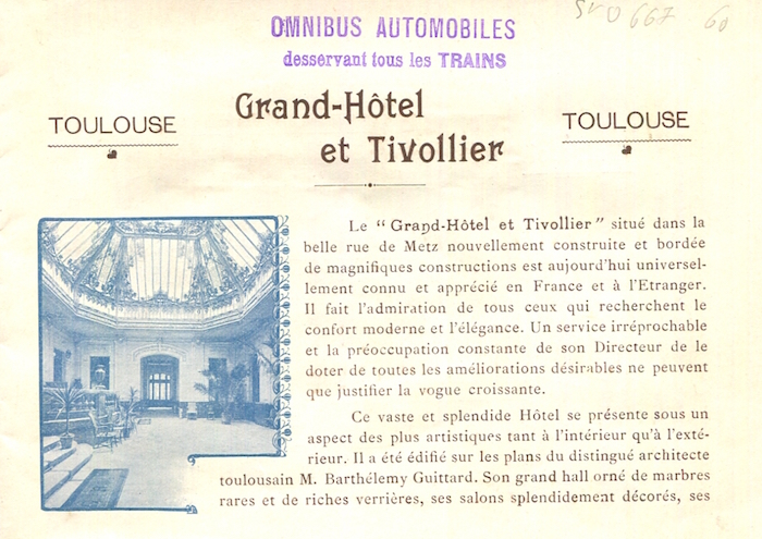 France Toulouse Brochure Grand Hotel Et Tivollier 1920