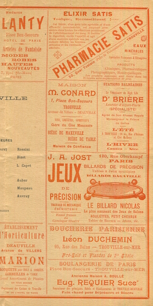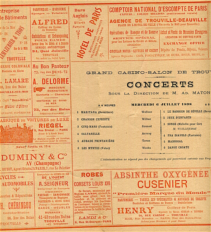 France Trouville Entertainment Grand Casino De Trouville Program 1898 Back