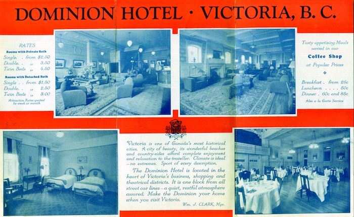 Canada Victoria BC Hotel Brochure Dominion 1939 Front