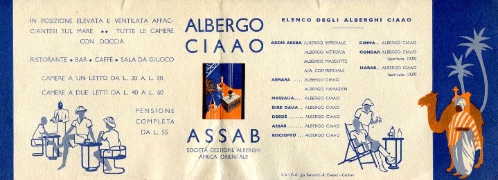 Eritrea Assab Brochure Hotel Albergo Ciaao 1938 Back