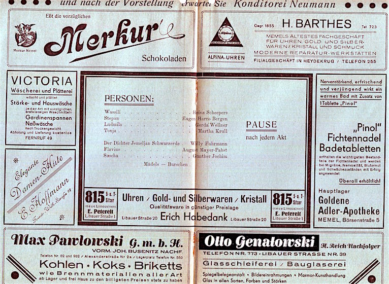 Memel Entertainment Memel Theater Program 1931-1932 Inside 1