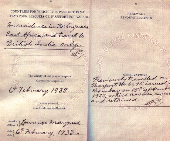 Mozambique Lourenco Marques Passport 1933 Inside 4