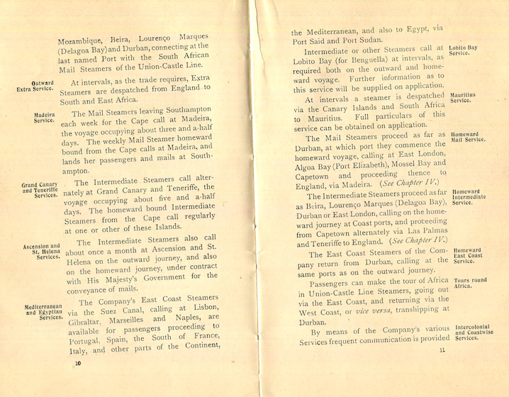 • South Africa Transport Railroads Union Castle Line Brochure Fleet Services 1923 Inside 2