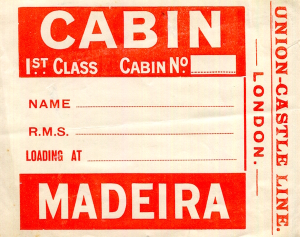 • South Africa Transport Railroads Union Castle Line Madeira Luggage Label 1928