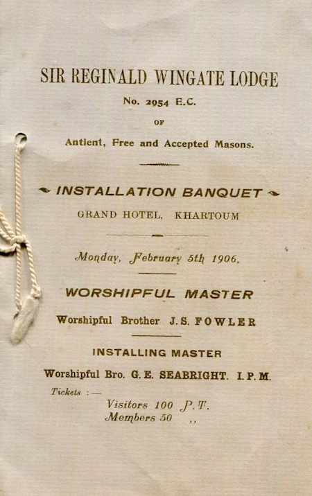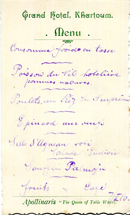 Sudan Khartoum Grand Hotel Menu 1906 Front