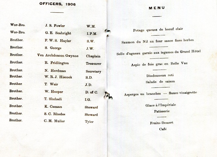 Sudan Khartoum Grand Hotel Menu 1906 Inside