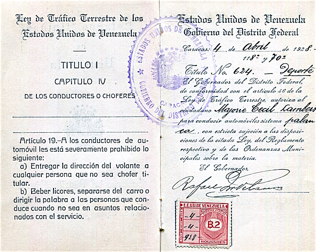 Venezuela Drivers Licence 1928 Inside 2