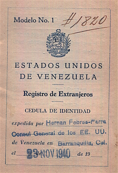 Venezuela ID Card 1940 Front