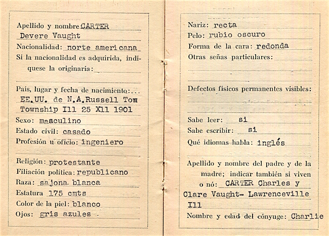 Venezuela ID Card 1940 Inside 4