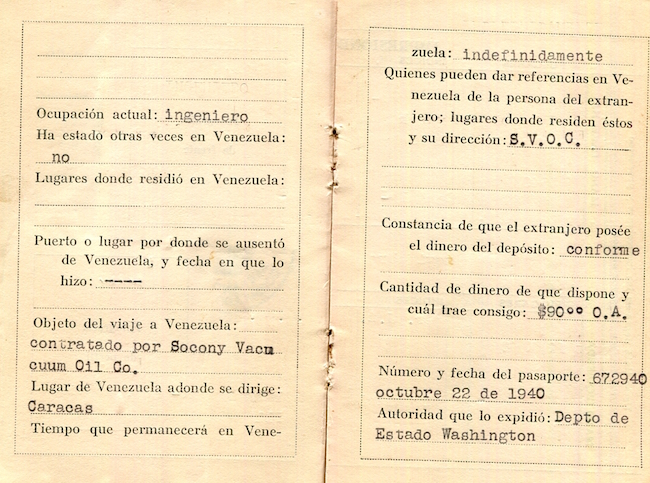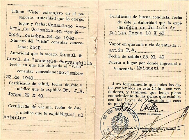 Venezuela ID Card 1940 Inside 6
