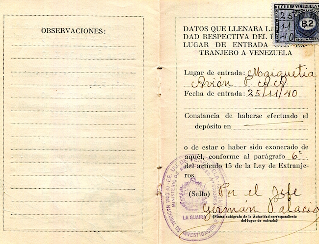 Venezuela ID Card 1940 Inside 2
