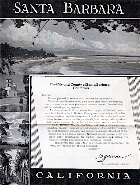 USA California Santa Barbara County Brochure 1932 Front