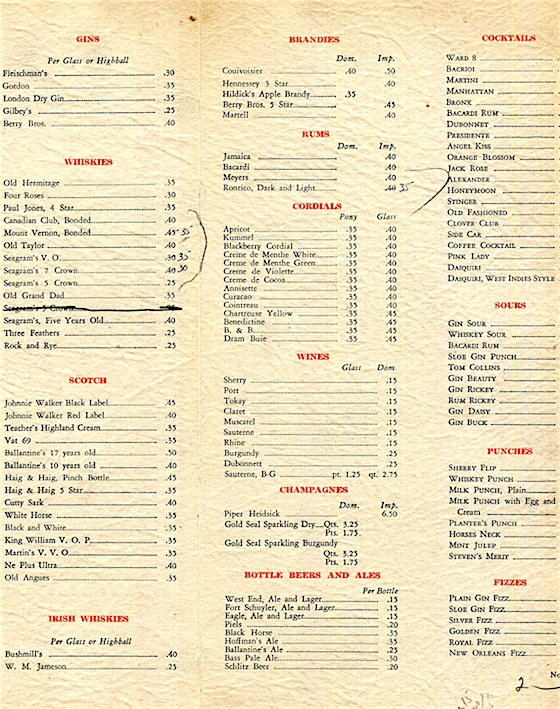 USA New York Cocktail List Restaurant Dibbles Inn Vernon 1938 Inside