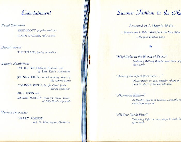 USA California Pasadena Huntington Hotel Brochure Summer Fashion Show Ester Williams Menu 1941 Inside 2