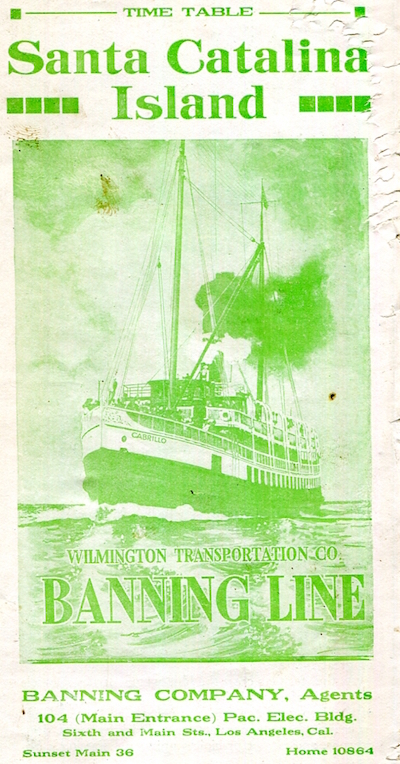 USA California Catalina Island Banning Line Timetable 1915 Inside