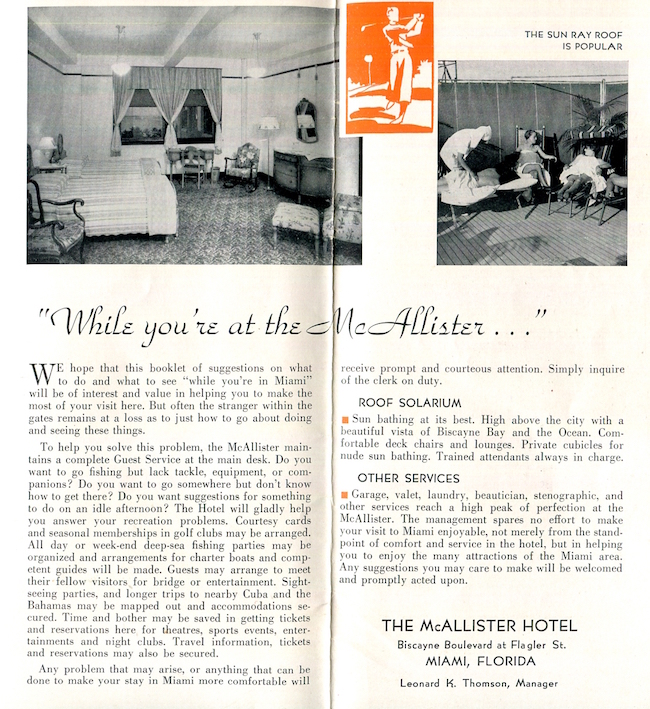 USA Florida Miami McAllister Hotel Brochure 1931 Inside 2