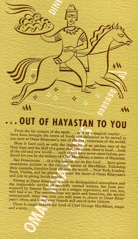 USA California Fresno Omar Khayyams Menu 1933 Front