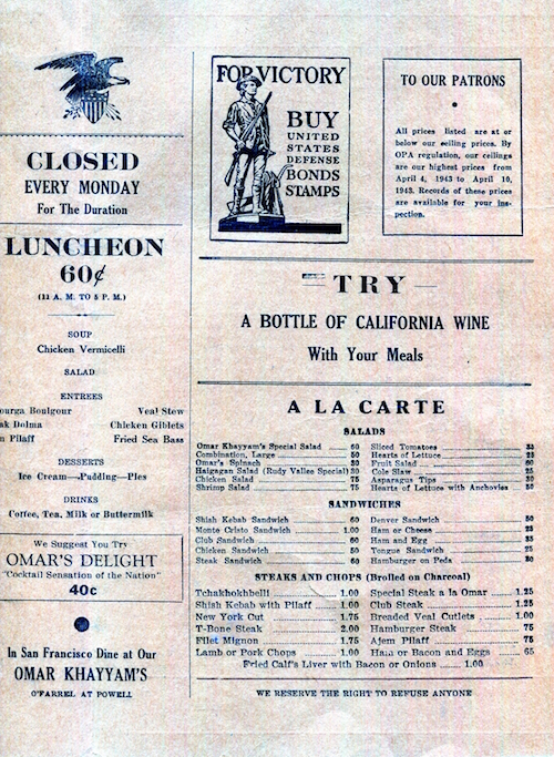 USA California Fresno Sequoia Hotel Menu 1944 Inisde 2