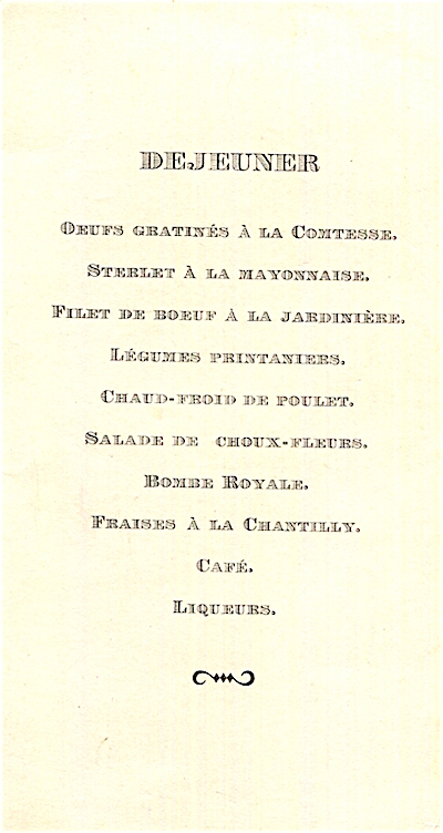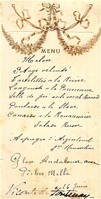 France Special Occasion Menu Vicomte De Fontenay 1909