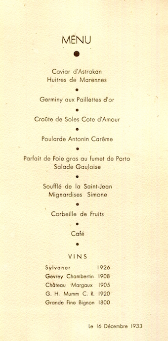 France Special Occasion Menu 1939