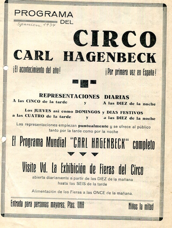 Spain Barcelona Entertainment Circus Hagenbeck Program 1934 Front