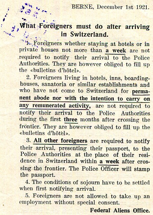 Switzerland Bern Hotels Leaflet 1921