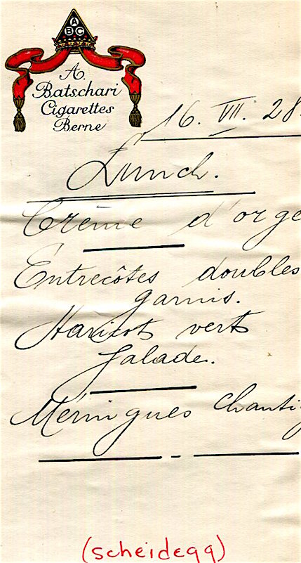 Switzerland Bern Menu Scheidegg 1928