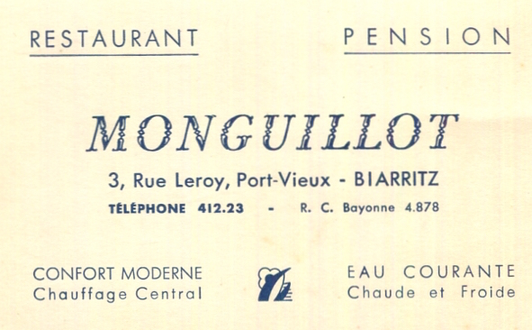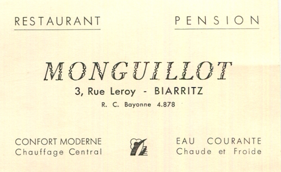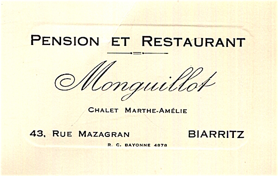France Biarritz Hotel Monguillot Businss Card 1936 2