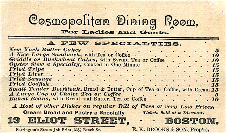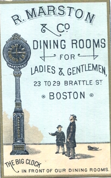 • USA Massachusetts Boston Trade Card R Marston Co Dining Rooms 1890