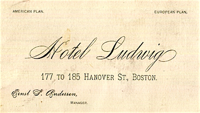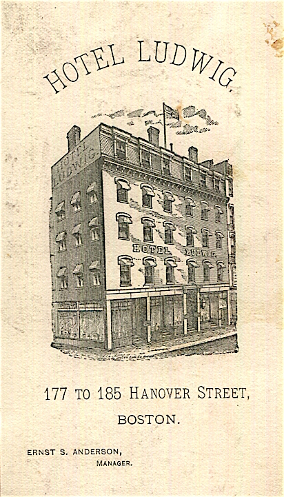 • USA Massachusetts Boston Trade Card Hotel Ludwig 1880 Front